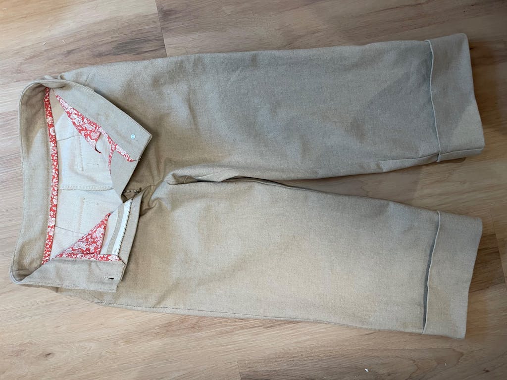 We recommend denim between 10–12 oz for your first pair – the sweet spot is 11 oz, which is easy enough to work with without being too stiff or heavy. The class includes guidance on identifying denim weight and choosing fabric that will sew well on a home machine.