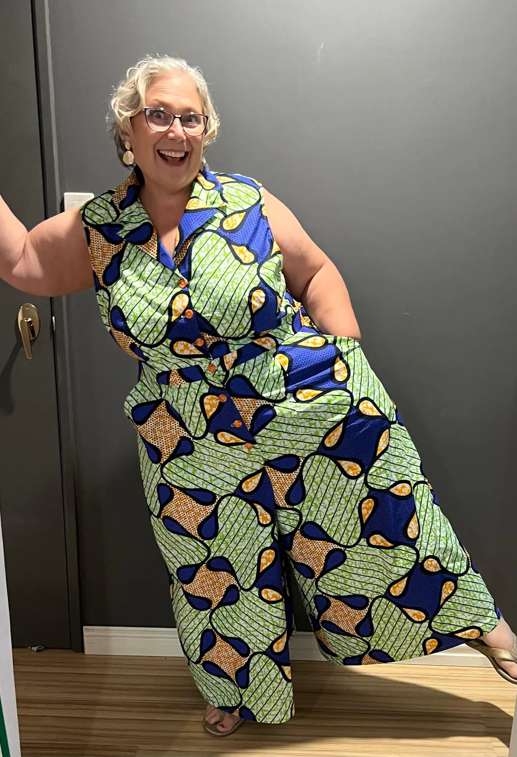 I used an African wax print. Next time I will French seam the trousers. I love the out come and I have had many compliments when wearing it.