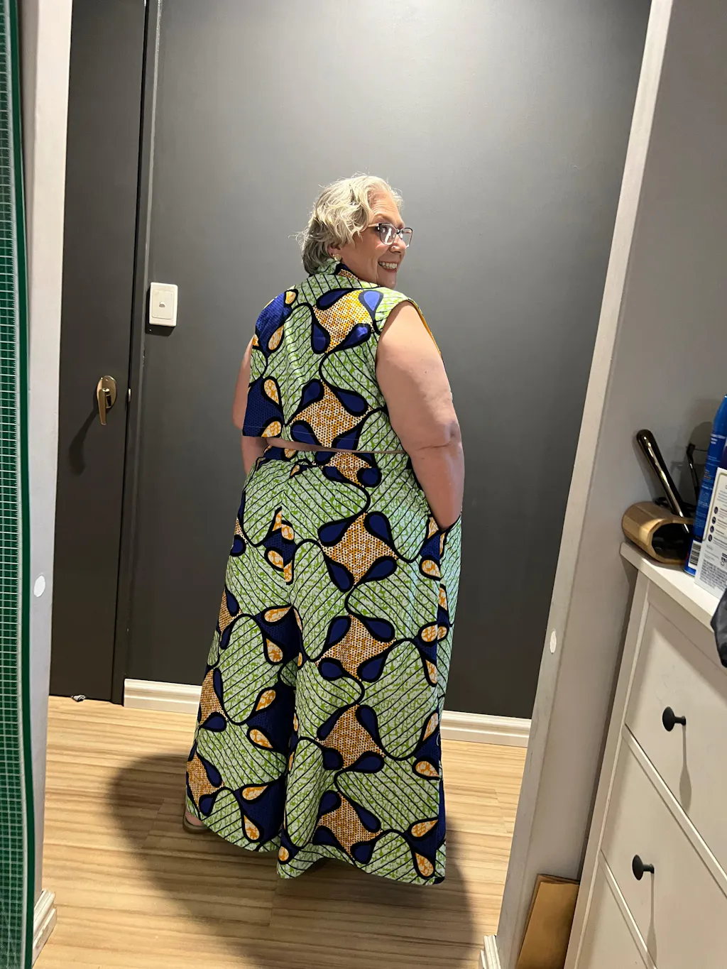I still love the design of this jumpsuit. Unfortunately, the pattern and instructions make it challenging to realize the potential of the design. Thus, I still haven't finished a full jumpsuit. However, I have created two dresses based on the version A top and attempted a version B jumpsuit. If you look at the pics, you'll probably guess what happened...