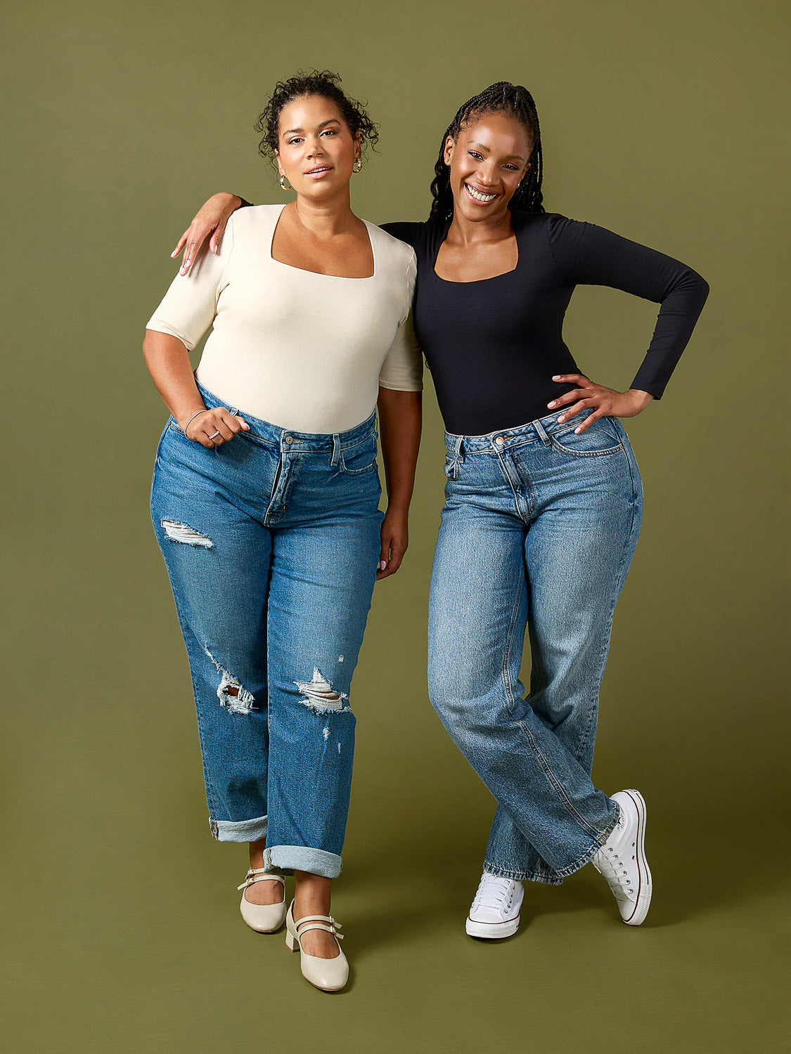 The Donna Bodysuit celebrates the sleek minimalism and elegance of 90s-era Donna Karan. Figure-hugging through the body with a striking angled square neckline, a built-in shelf bra provides seamless support and a clean neckline finish. The leg is low-cut and finished with elastic, with a snap closure at the crotch for all-day comfort. This modern interpretation of an iconic 90s classic is the kind of essential power piece that effortlessly works with all the pants and skirts in your wardrobe.