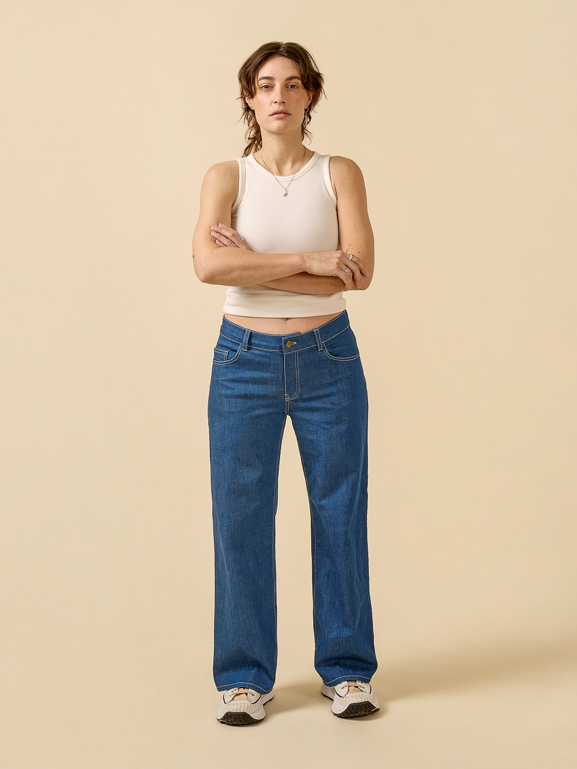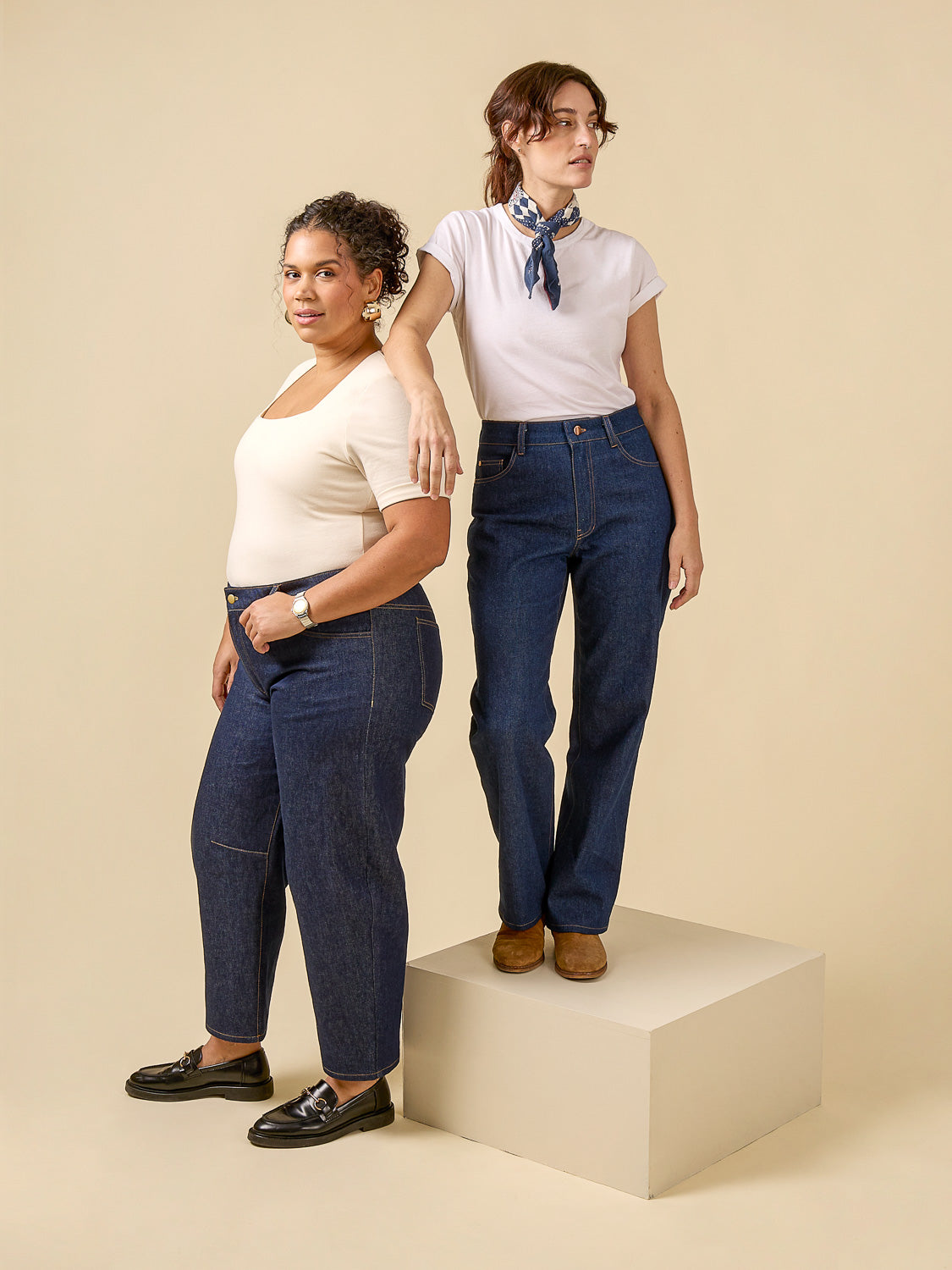 Meet Frank, the jeans pattern that adapts to you. Inspired by classic heritage denim with a close fit through the hips and a cheeky cut through the seat, Frank offers mix-and-match options for rise and leg shape so that you can create the jeans of your dreams. With traditional details like a five-pocket design, fly-front zipper, angled yoke, contoured waistband, and belt loops, Frank will become the foundation of your denim wardrobe, a pattern you'll remix and repeat for years to come.