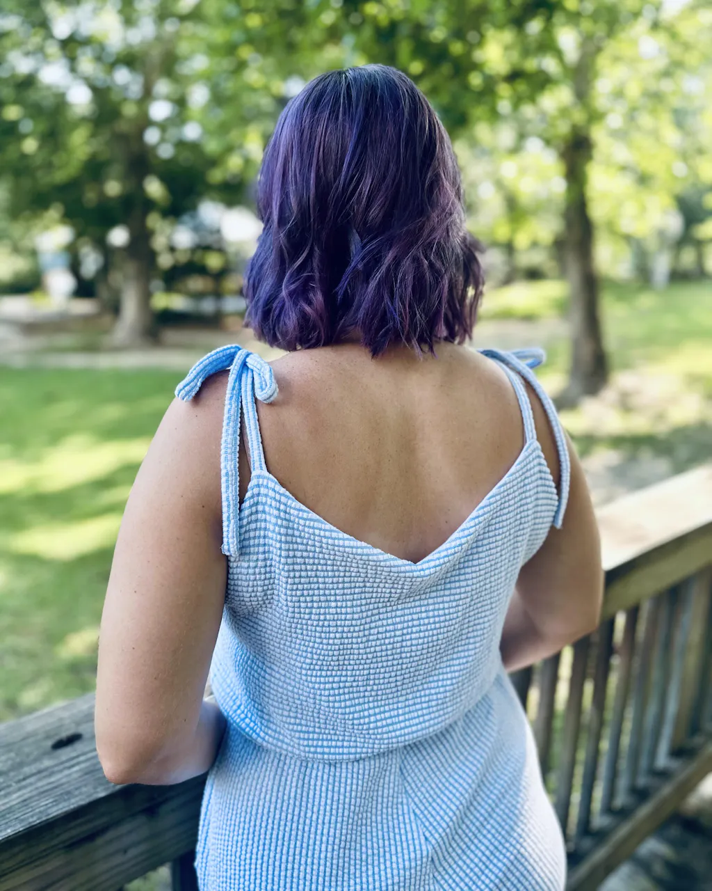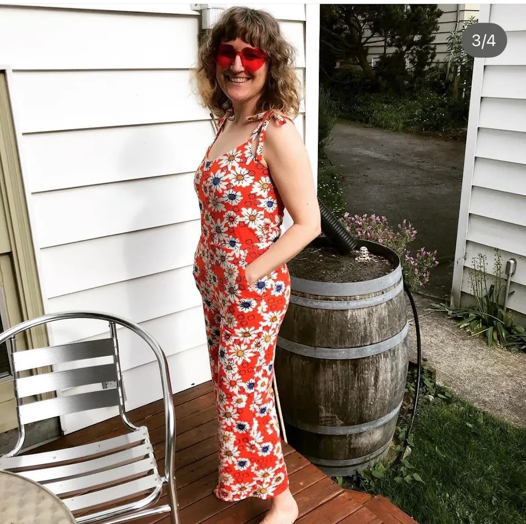I sewed up the full pants romper with the tie straps and it’s absolute love! This is my first pattern from this company, but it won’t be my last. The only adjustment I needed was a full seat adjustment, which is something I frequently have to do. It sewed up with clear instructions and fits beautifully.
