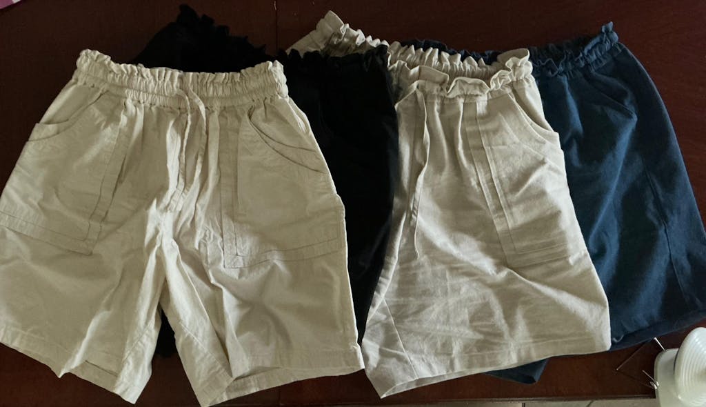 I loved the look of the shorts but I combined a little of the pants so I could have a longer inseam. I made 5 pairs of shorts using the pattern.