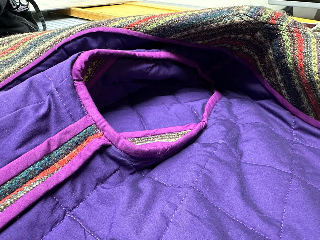 I love this pattern! Of course it is drafted beautifully, with fantastic instructions, per CC standards. It’s also pretty versatile, and this is the first of my three planned renditions. I quilted thrifted wool, stash poplin, and Core’s recycled wool batting. I also made the bias binding from the same lining substrate, different color, for the Hong Kong finished seams. Sized up for the quilted version, though I don’t know that I needed to. I’m so in love with this jacket & wear it every chance I get! Two more versions to come :) I’m not on the socials any longer, but have enjoyed the low-key vibe of threadloop https://threadloop.app/members/violetquagmire/projects/quilted-jacket